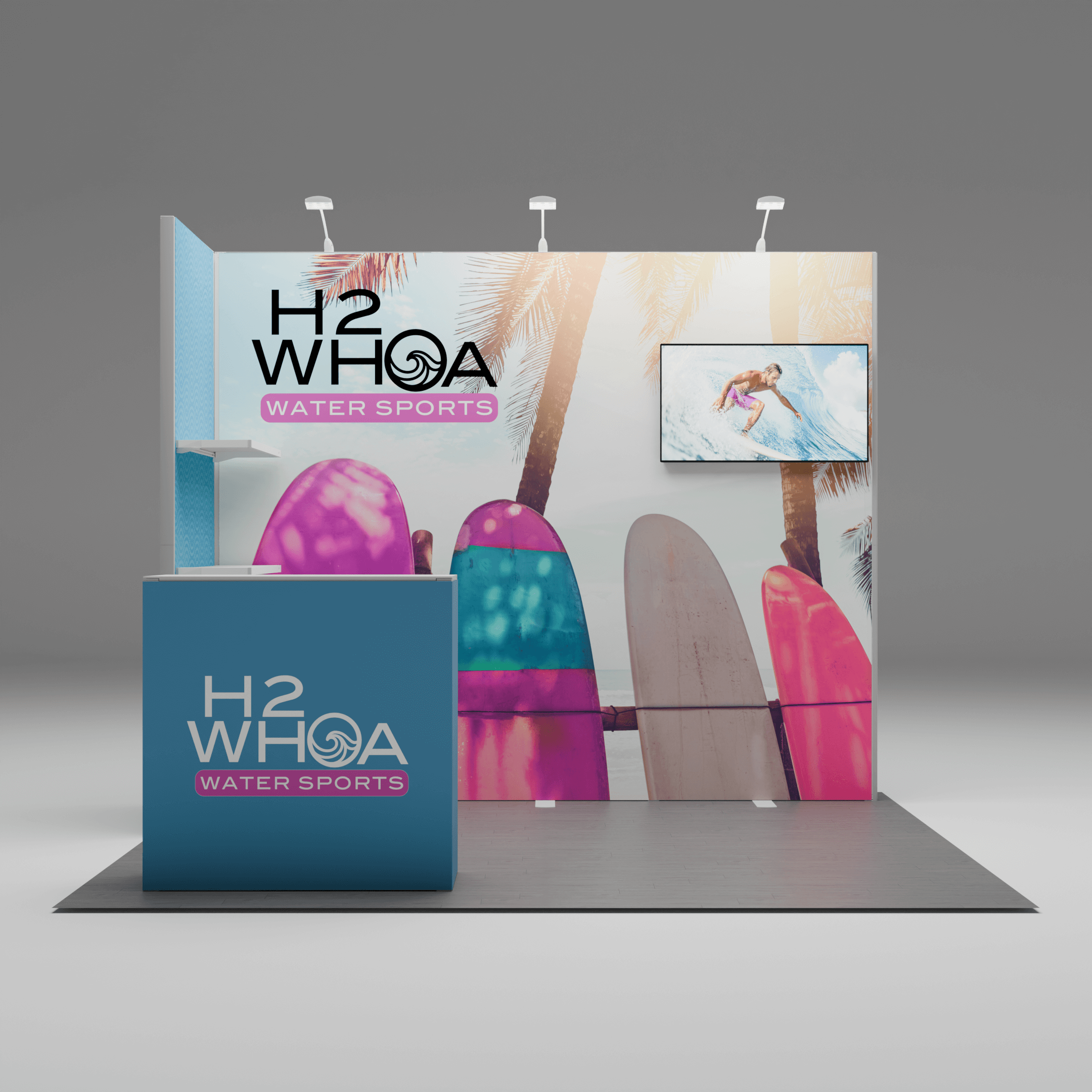 En choisissant le système modulaire Looboo, vous investissez à la fois dans le présent et l’avenir. Vous pouvez débuter avec un simple mur arrière de 6 pieds et agrandir votre kiosque selon vos besoins pour obtenir un kiosque de 10’ x 10’, 10’ x 20’, ou même un stand de type îlot. Avec des options telles que des caissons lumineux, des rangements, des comptoirs et un éclairage LED, vous pouvez réinventer votre stand à chaque événement.